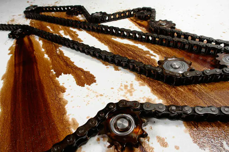 La bomba por sus características trabaja a 1/4 de revolución por minuto. La pieza tardó aproximadamente 15 horas en concluir. Al final, el aceite de coche comenzó a derramarse por el extremo abierto del catéter pintando la pared.