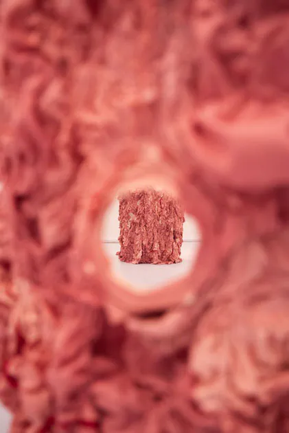 Al adentrarse, una observa que se trata de una inmersión invertida. Invertida, al poner sobre el primer plano lo que constituye la piel como órgano, creando un encuentro visual entre la mirada, el reflejo y el adentro. Poner delante la dimensión más visceral de la piel provoca reacciones, y es lo que busca Miriam Medrez: abrirnos al universo de las sensaciones que reconocemos propias desde un ojo que se observa táctil. Por otro lado, este encuentro casi imposible entre el reflejo y la carne nos lleva a un reconocimiento de nuestro cuerpo biológico, la materia de la que somos hecho.