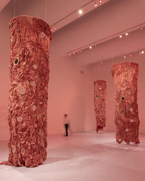 Estamos ante la sensación de la piel como un órgano vivo, un dispositivo de pliegues, de posibilidades infinitas. Sólo un cuerpo múltiple tiene tanta piel como los tubos suspendidos de los que salen una melodía de voz y saxofón, una presencia casi religiosa y la manifestación de una emoción pura.