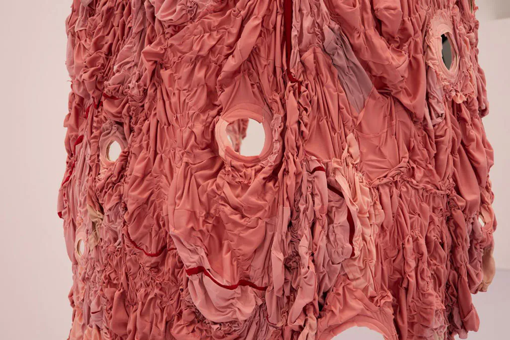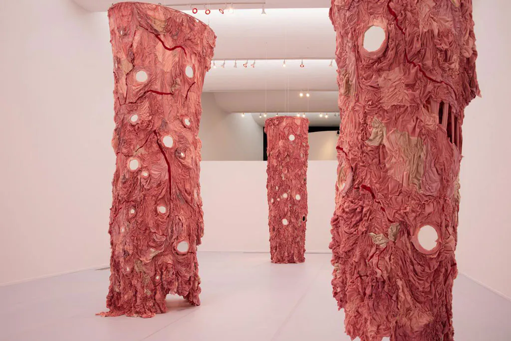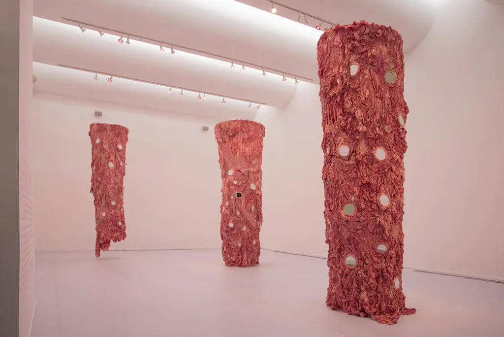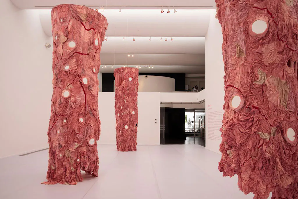 Dérmica es una instalación textil multimedial de la escultora Miriam Medrez, realizada especialmente para el espacio del Centro Cultural Plaza Fátima. En esta ocasión, la obra de Miriam Medrez que se enfoca principalmente en el cuerpo humano, se adaptó a la altura y dimensión de la sala para convertirse en experiencia inmersiva e instalación textil semi monumental.