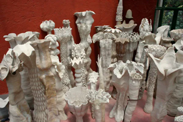 “Hacer un poema como la naturaleza hace un árbol” escribía el poeta chileno Vicente Huidobro. Decía también, “El poeta es un pequeño Dios”. Pienso que esas máximas se aplican extraordinariamente en un trabajo como el que realiza un ceramista o un escultor. De lo informe, de la materia por recibir “ánima” gracias a las bodas alquímicas del fuego y los minerales, del caos primigenio “cuando el agua no estaba en la ciencia de Dios” (Chumacero, dixit), de la extrañeza y la orfandad de no estar en el verbo creador, sí, de ese región turbia, vacilante y, por supuesto, poderosa, el escultor se encamina (guiado por su talento, su disciplina y sus corazonadas) a traernos algo que no estaba inventariado en la realidad del aquí. Hacer un árbol o una flor no como réplica –aristotélicamente hablando− de la naturaleza; allende la imitación, el escultor infunde un espíritu, un aroma, un despertar a ese volumen tridimensional que podría parecer, un árbol o una flor pero que, bien mirado, es algo más que un árbol o una flor, tal vez la semilla del no querer morir del todo. Tal vez el deseo de construir un jardín sin la mirada de un dios cruel sobre nosotros.