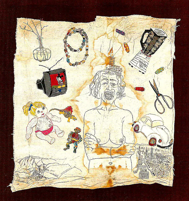 5. Autobiografía #4. 1998. Dibujo y bordado.90 x 90 cm.