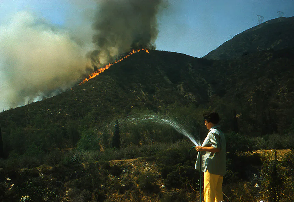 Buscando un trabajador para reparar mi casa móvil que colapsó el huracán Odile en el 2014, en la península de BC, encontré en la basura de un negocio de casas móviles usadas, seis cajas con alrededor de ocho mil diapositivas, hechas con película Kodachrome. La otra mitad del archivo había sido quemada dos días atrás. En “Las ruinas circulares” de Borges, es el fuego quien anima al hombre soñado, pero es también el fuego, el único que sabe, que el hombre soñado no es real….