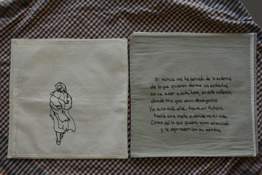 Entre los miles de personas que este país acogió, había muchas y muchos poetas. Ellos, los varones, son conocidos. Ellas, no tanto. En este libro de artista decidí bordar dos poemas de Concha Méndez (Madrid 1898 - México 1986) como metáfora de la palabra de todas las poetas que caminaron hasta llegar a estas tierras, y como homenaje todas las mujeres que siguen caminando hoy en día a lo largo y ancho de la Tierra para salvar sus vidas.
