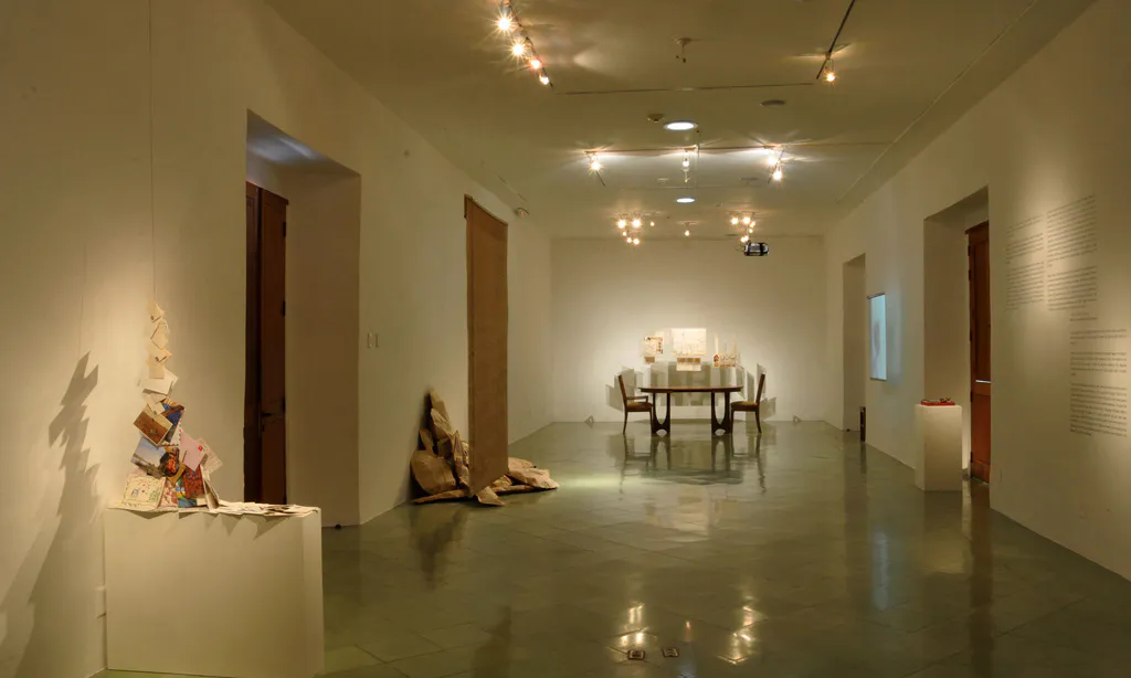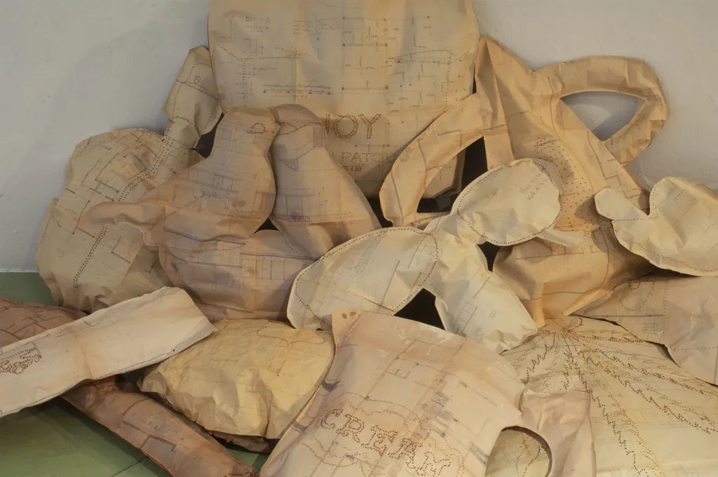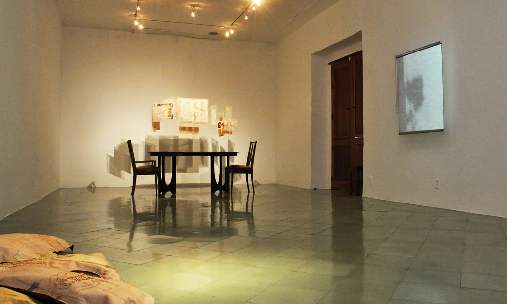 La artista establece pues un contrato. Reproduce fotos favoritas, elige fragmentos de ellas y las reproduce de manera fantasmal. Puestas en el lugar del estante que habitaron en la sala familiar, las imágenes aparecen aún más lejanas en el tiempo. Más de lo que la fotografía de por si es. Toma planos viejos de la casa familiar, y los convierte en grandes inflables. Ya no son el sueño futuro del lugar para todos, sino se han convertido en pieles ajadas de objetos que la hija sabe que fueron preciados para la madre. Como arqueóloga de la casa de infancia, rescata sombras precisas, pero no cualquier sombra, sino aquellas que se reflejaban en la persiana del dormitorio maternal.